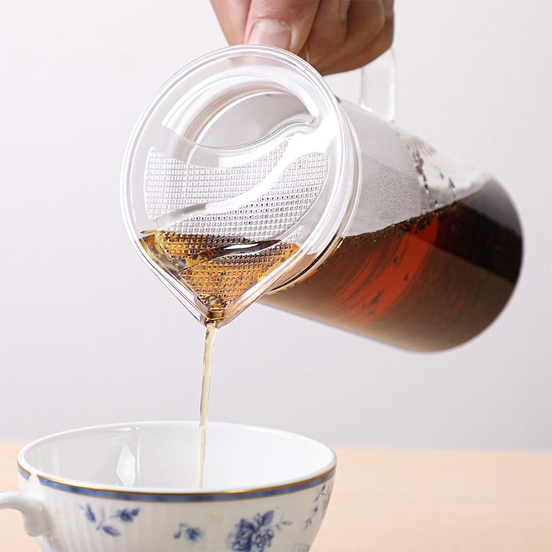 - Bước 5: Khi rót, rót chậm để hạn chế lá trà nổi làm tắc lưới lọc.