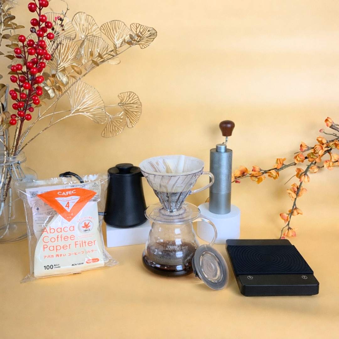 Từ ấm rót cổ ngỗng Presso kiểm soát dòng chảy, cối xay tay Pressoco CNC chính xác, cân điện tử Pressoco K99E, đến phễu Hario V60, server Tiamo và giấy lọc CAFEC Abaca – tất cả kết hợp thành một workflow hoàn chỉnh, giúp việc pha cà phê trở nên dễ kiểm soát, ổn định và trọn vẹn hơn mỗi ngày.