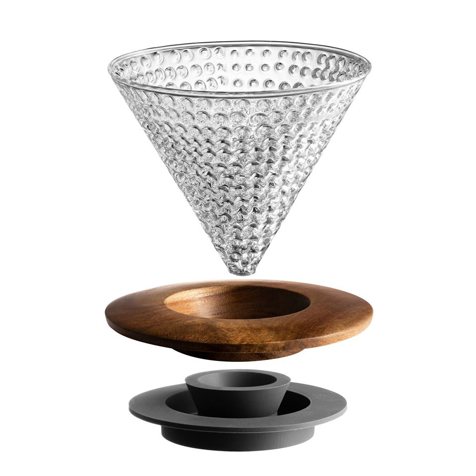Bạn sẽ bị cuốn hút với ngoại hình bắt mắt và độc đáo của chiếc phễu đến từ Đài Loan . Vì ở thời điểm hiện tại , các loại phễu pha V60 trên thị trường không có nhiều sự đột biến , sáng tạo . Kiểu thiết kế phễu V60 bằng thuỷ tinh với các chấm nhỏ dọc thân gần như chưa xuất hiện .
