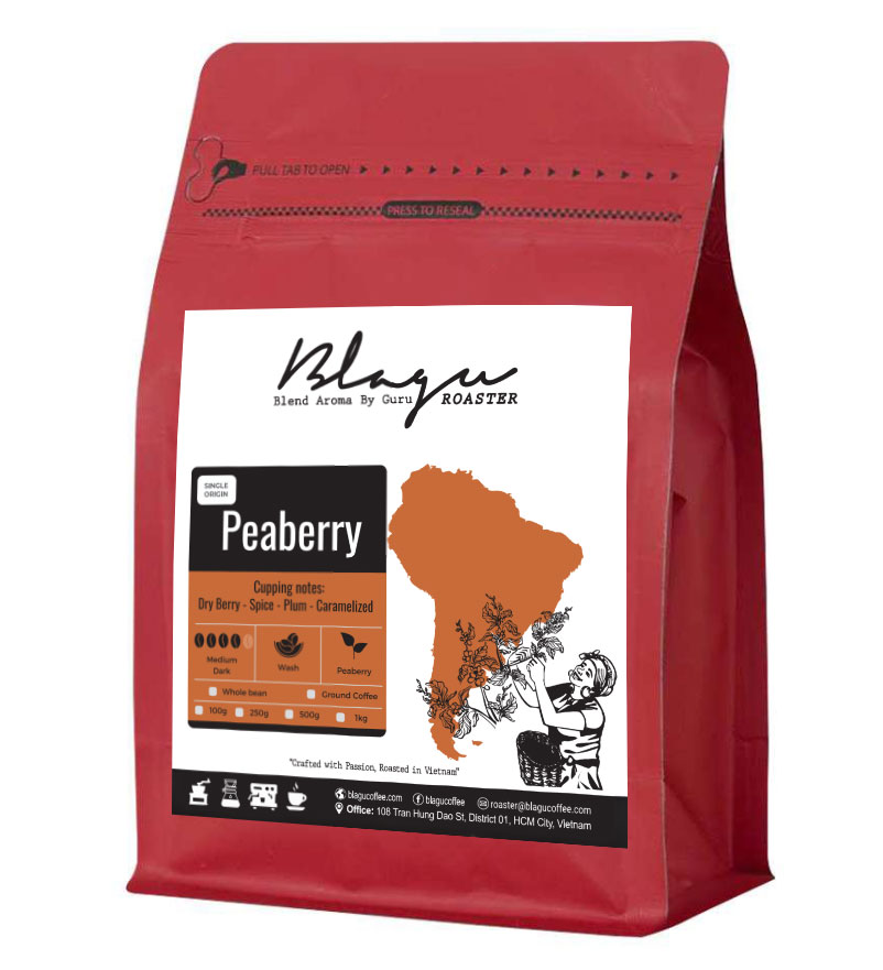 Cà phê Blagu Hạt Đã Rang, Peru Peaberry, Medium Dark Roast, 250g
