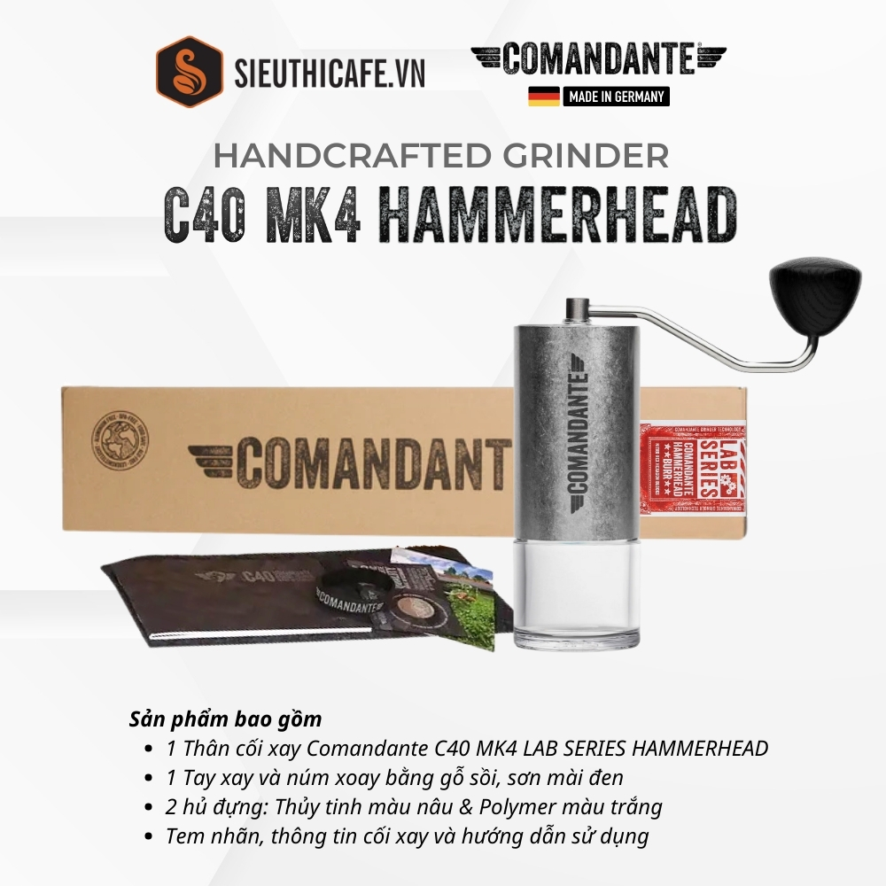 - Phiên bản C40 MK4 LAB Series Hammerhead là phiên bản nâng cấp của mẫu MK3, với thiết kế lưỡi xay Hammerhead độc đáo cho phép xay hạt cà phê với hiệu suất cao hơn.