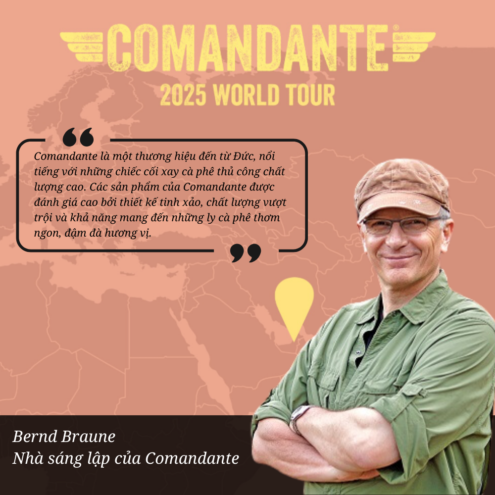 - Comandante là một thương hiệu nổi tiếng của Đức, được sáng lập bởi Bernd Braune cùng với gia đình và bạn bè của ông sau nhiều năm làm việc trong ngành cà phê.