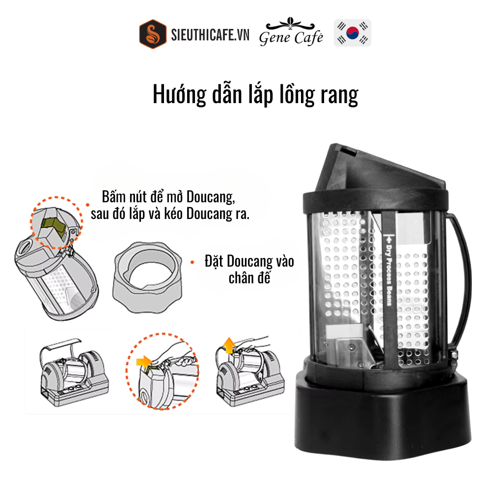 - Kích Thước Phù Hợp: Lồng rang được thiết kế với kích thước phù hợp để rang 250g hạt cà phê mỗi lần, đáp ứng nhu cầu sử dụng cá nhân hoặc gia đình.